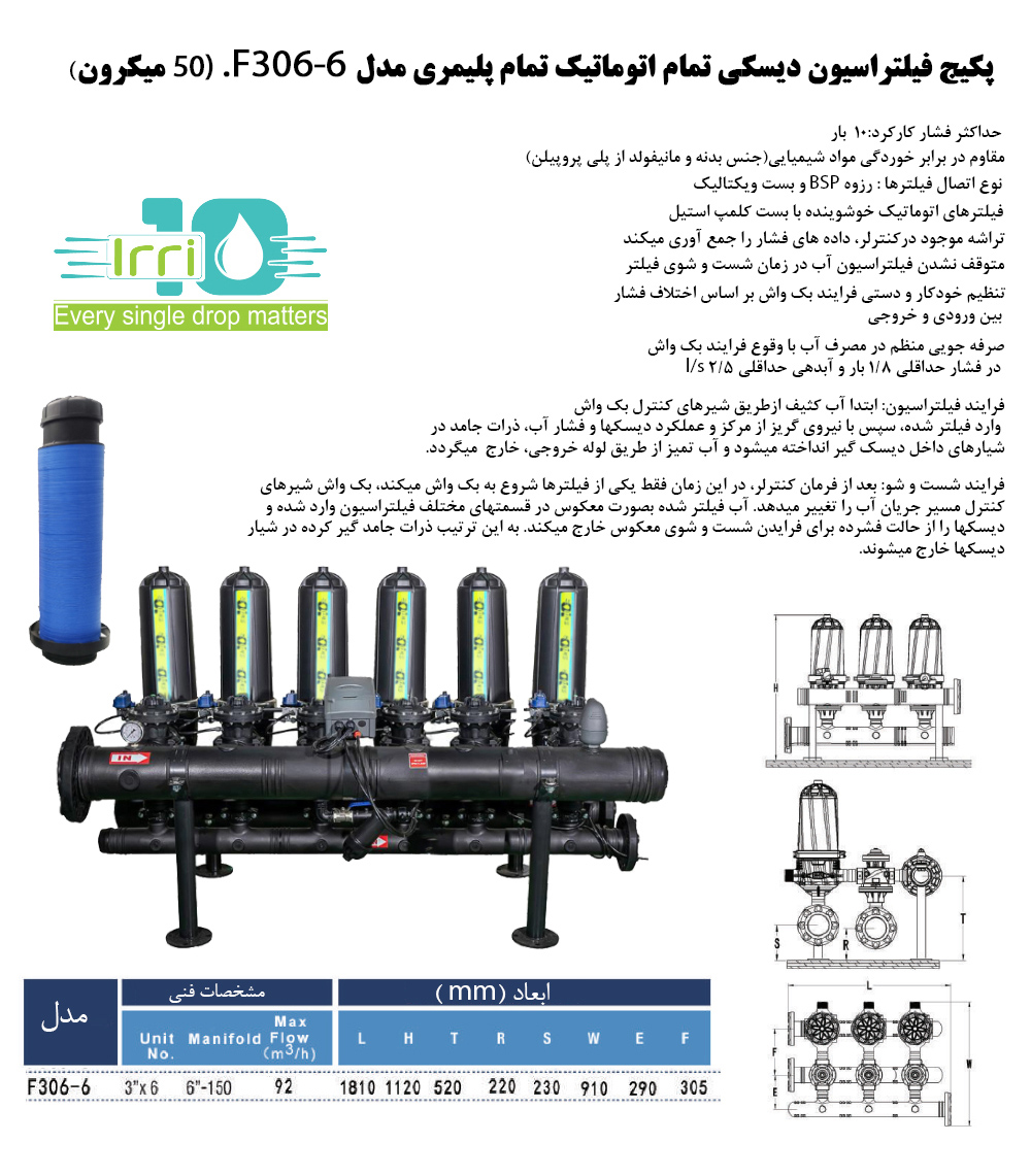 پكيج فيلتر ديسكي اتوماتيك 6 واحده صنعتي- مدل F306-6- (50 ميكرون)