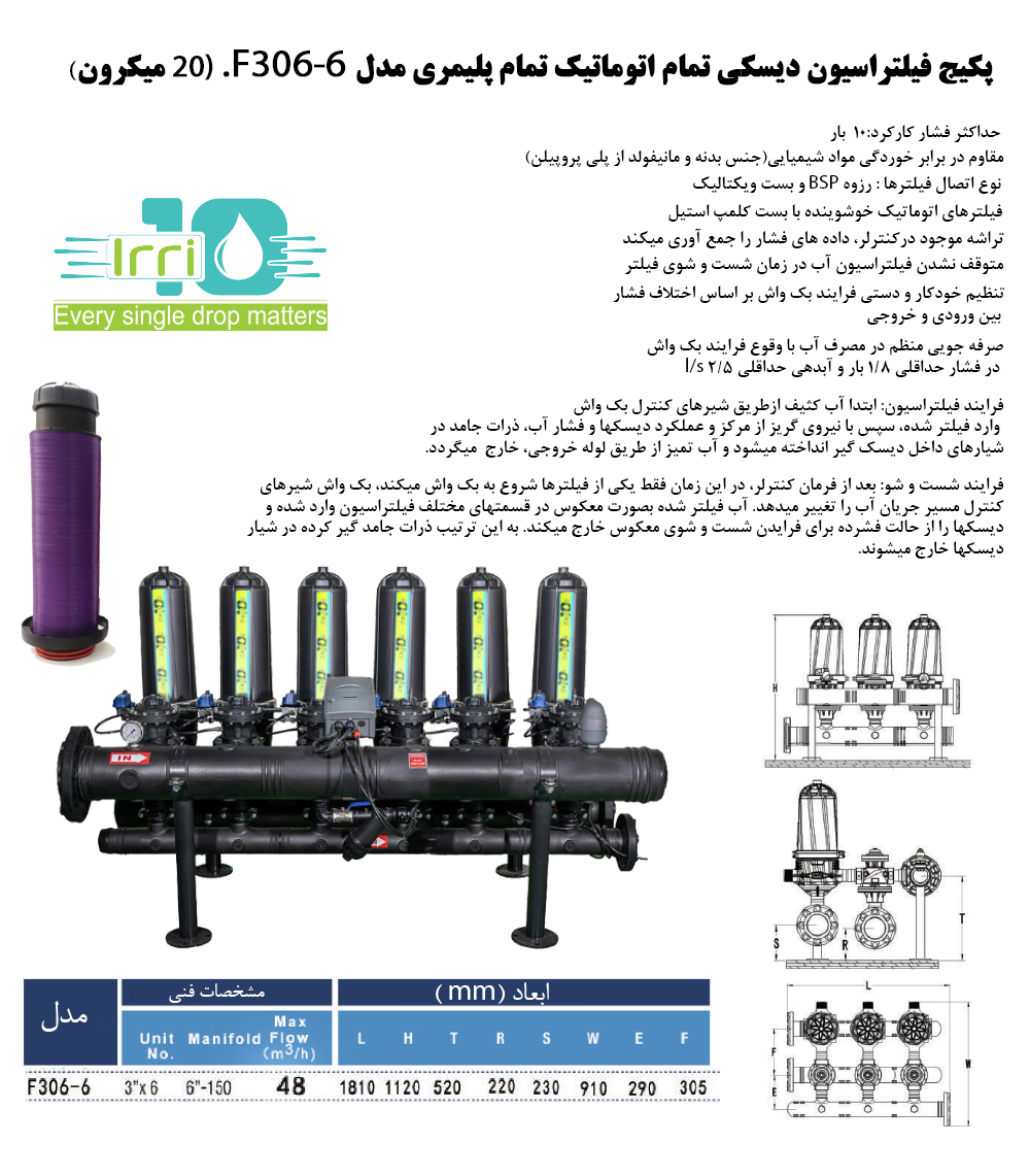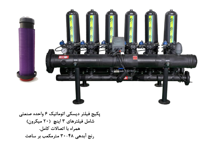 پكيج فيلتر ديسكي اتوماتيك 6 واحده صنعتي- مدل F306-6- (20 ميكرون)