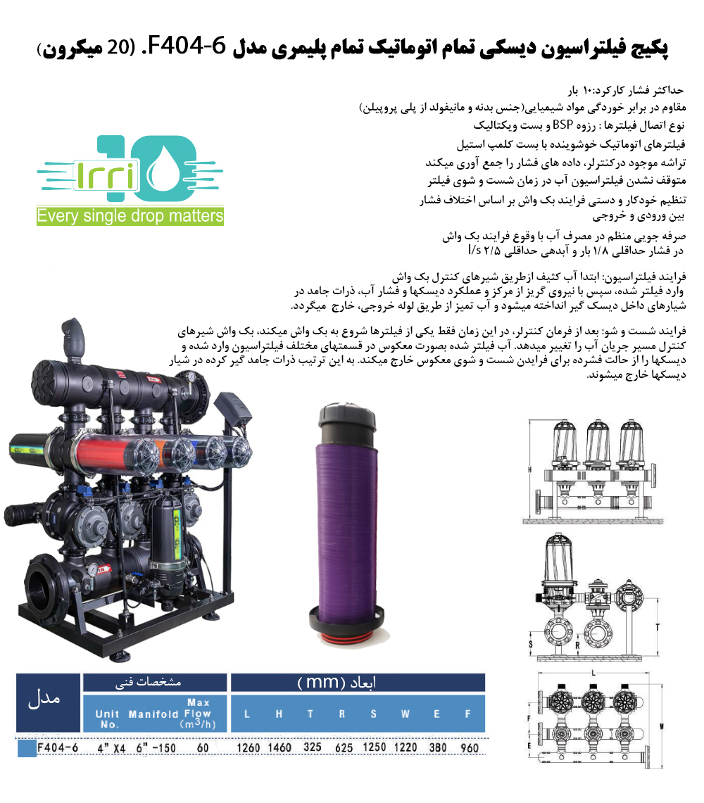 پكيج فيلتر ديسكي تمام اتوماتيك 4 واحده دوبل صنعتي- مدل F404-6- (20 ميكرون)